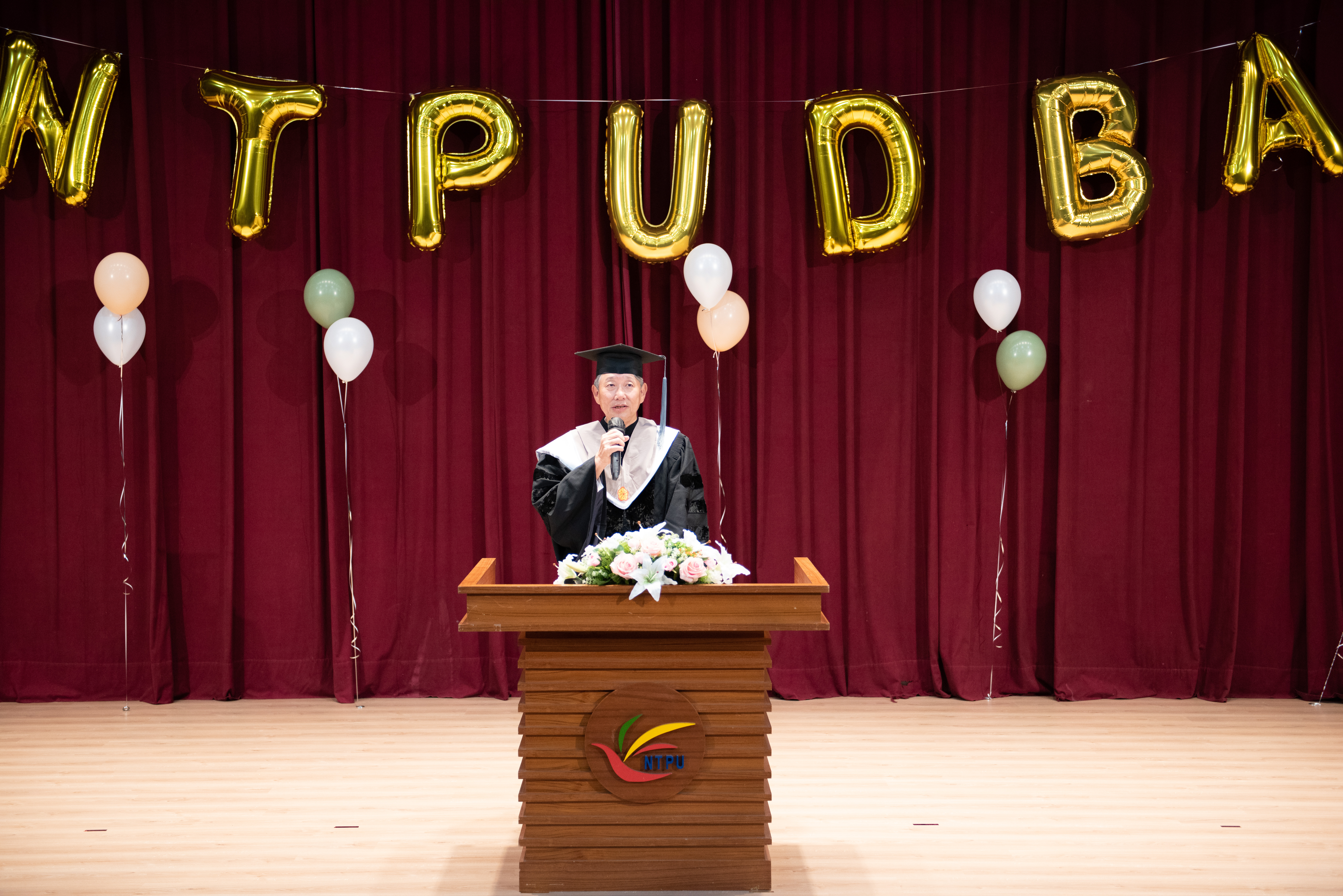 111學年度本系畢業撥穗典禮於6月10日盛大舉辦,當天除了布置精美的場地,更邀請專業攝影師幫畢業生進行拍攝,讓大家留下美好難忘的回憶與照片。一開場系主任林美珍教授代表全體師長向畢業生恭喜,並告訴所有畢業生們歲月安穩是因為有人在後面替你負重前行,要感謝家人無私的愛、師長指引方向、同學朋友的彼此陪伴及分享喜悅,更要感謝自己勇於承擔挫折與不確定;期勉同學能讓別人快樂的人是善良的人,能讓自己快樂的人是聰明的人,期許大家都能做個善良又聰明的人。崇越集團董事長郭智輝博士期勉畢業生們,社會需要會解決問題的人才,要防範未來可能產生的問題、解決正出現的問題、處理已發生的問題,且發生問題後要圓滿善後,期許畢業生們都能成為社會需要的人才;郭博士也提到敬業樂群是非常重要的,同時專業經理人的功能,是將公司的策略目標清楚傳達給基層員工,因此期許大家都能做到直接且清楚有效的溝通。接著系友會理事長古永嘉教授向畢業生提到commencement的意義是人生重啟,期許畢業生們能夠在離開學校後開啟新的人生階段、開闊視野,為臺北大學爭一口氣!