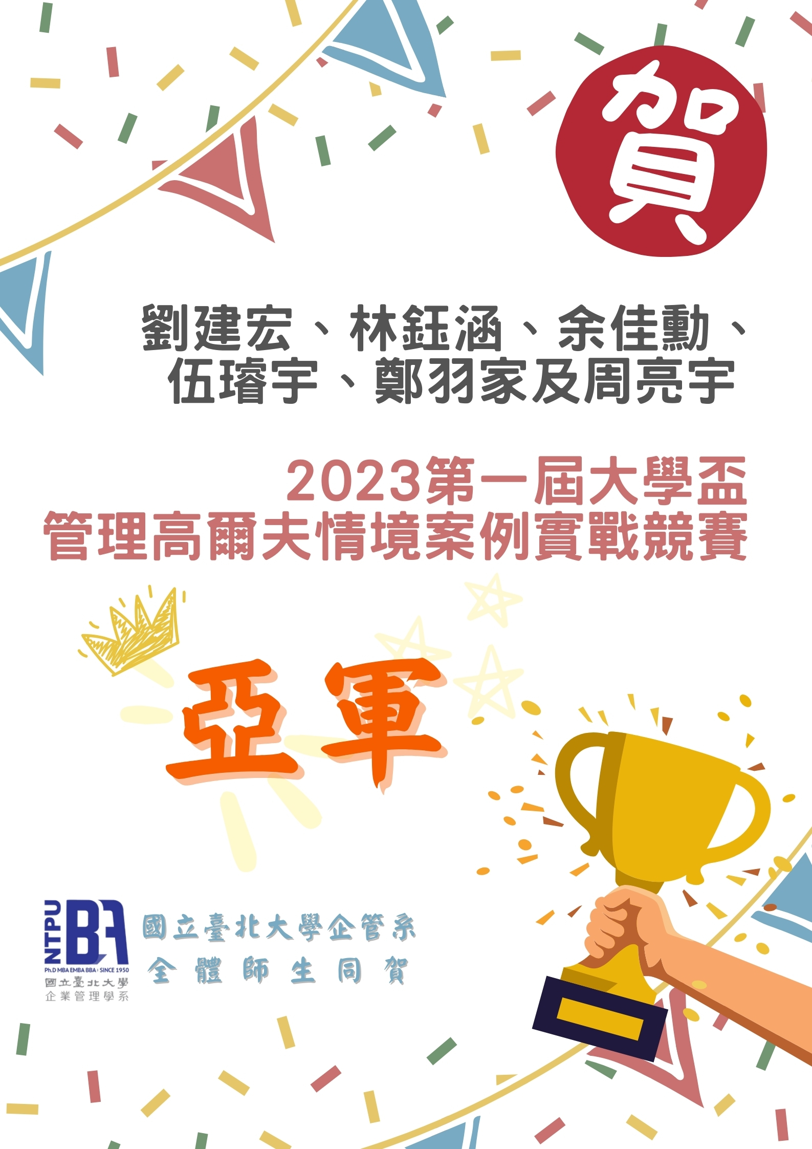 企管系大學部專題報告競賽於12月20日假三峽校區商學大樓1F01階梯教室舉辦,本次競賽係本系之核心課程「管理實務專題研討」期末專題報告競賽,共有144位學生、11位老師、3位業界專家參與。本競賽主要目的為學生在大學期間之學習成果,藉由專題報告看到同學間團隊合作、所學應用及個人表達能力與態度的成長與轉變。