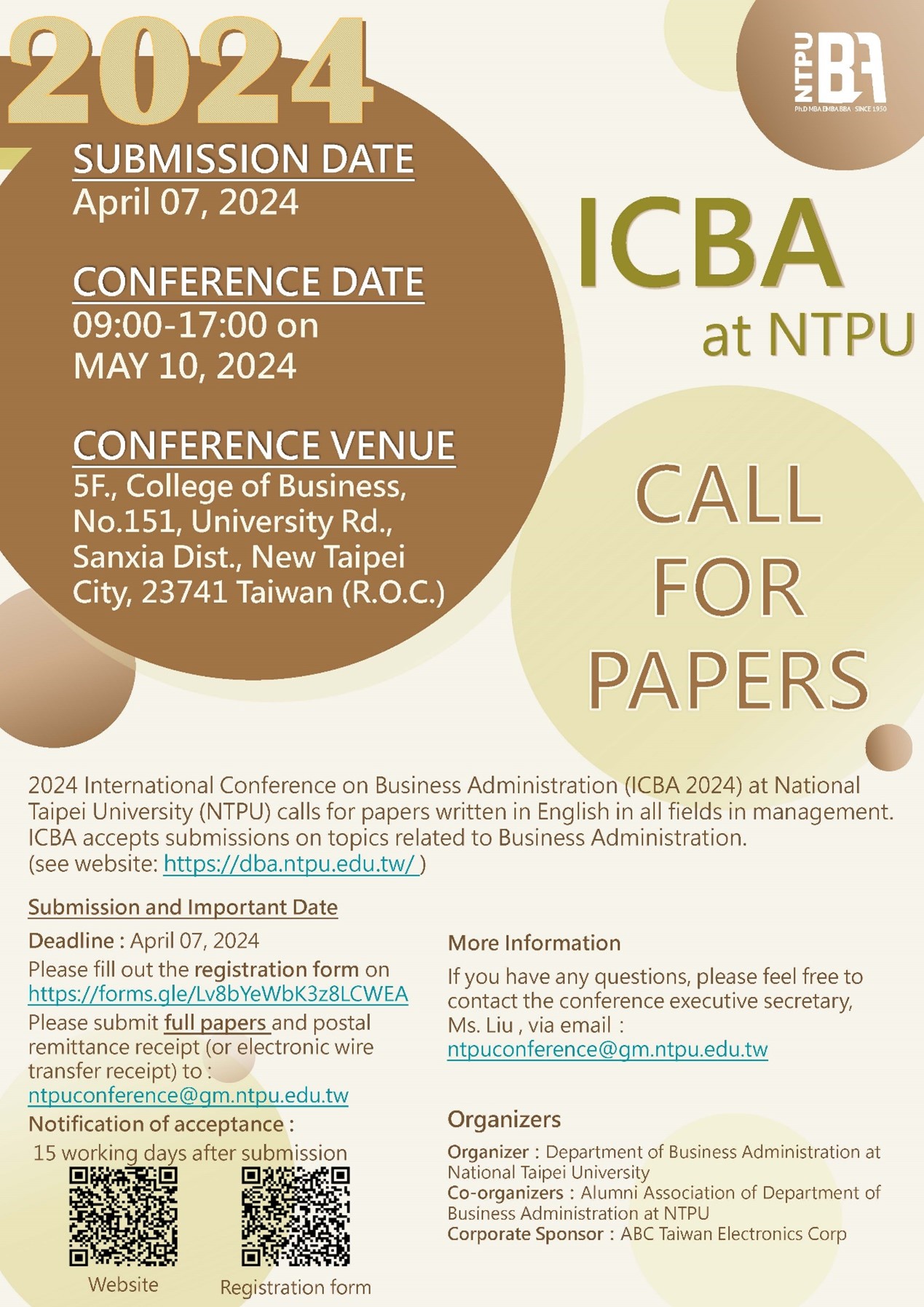 【CALL FOR PAPERS】2024 ICBA AT NTPU