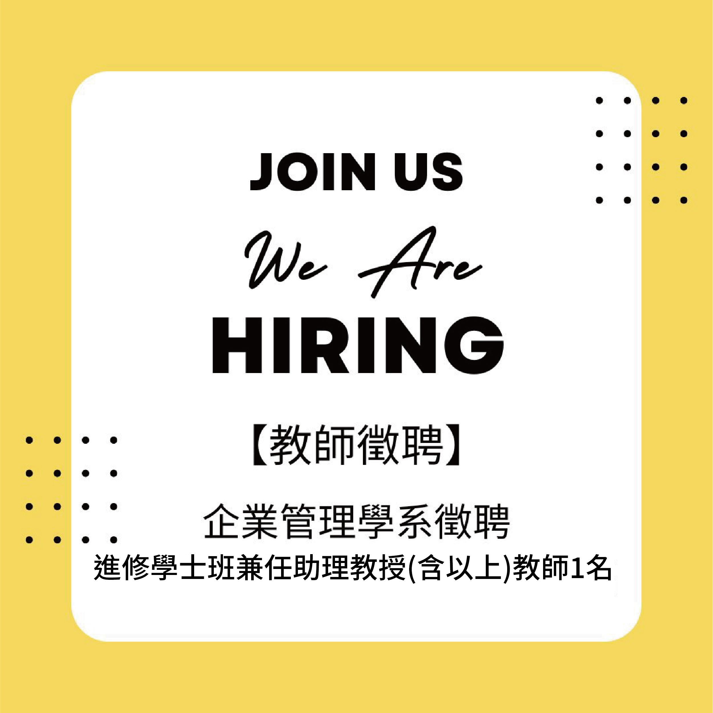 【教師徵聘】本系徵聘進修學士班兼任助理教授(含以上)教師1名