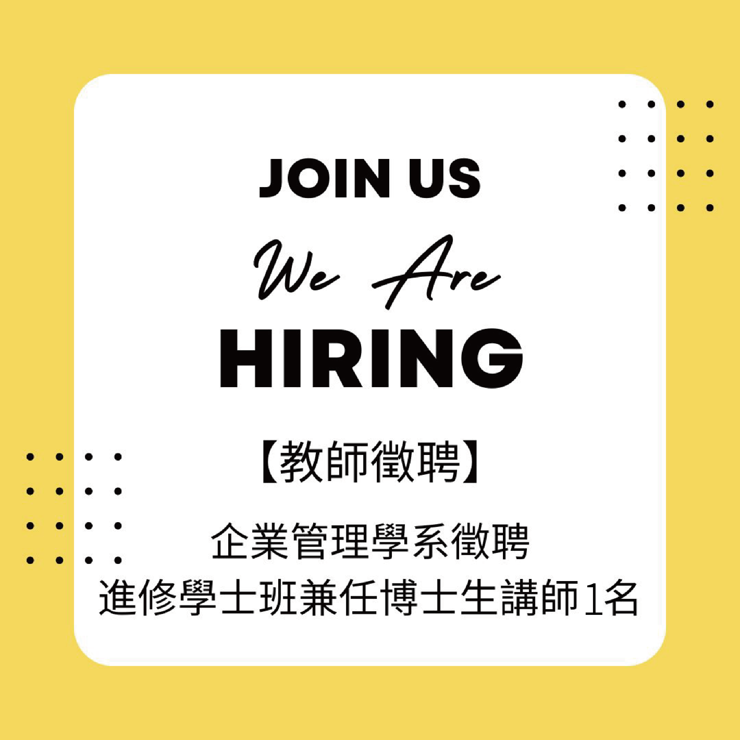 【教師徵聘】本系徵聘進修學士班兼任博士生講師1名