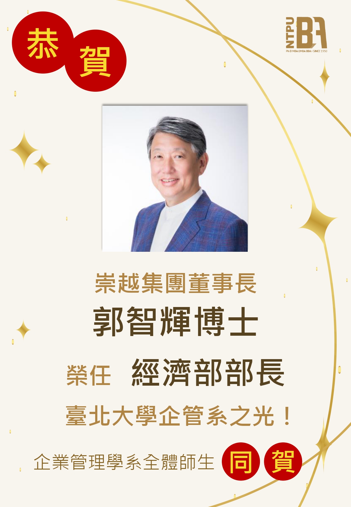 恭賀崇越集團總裁 郭智輝博士 榮任經濟部部長