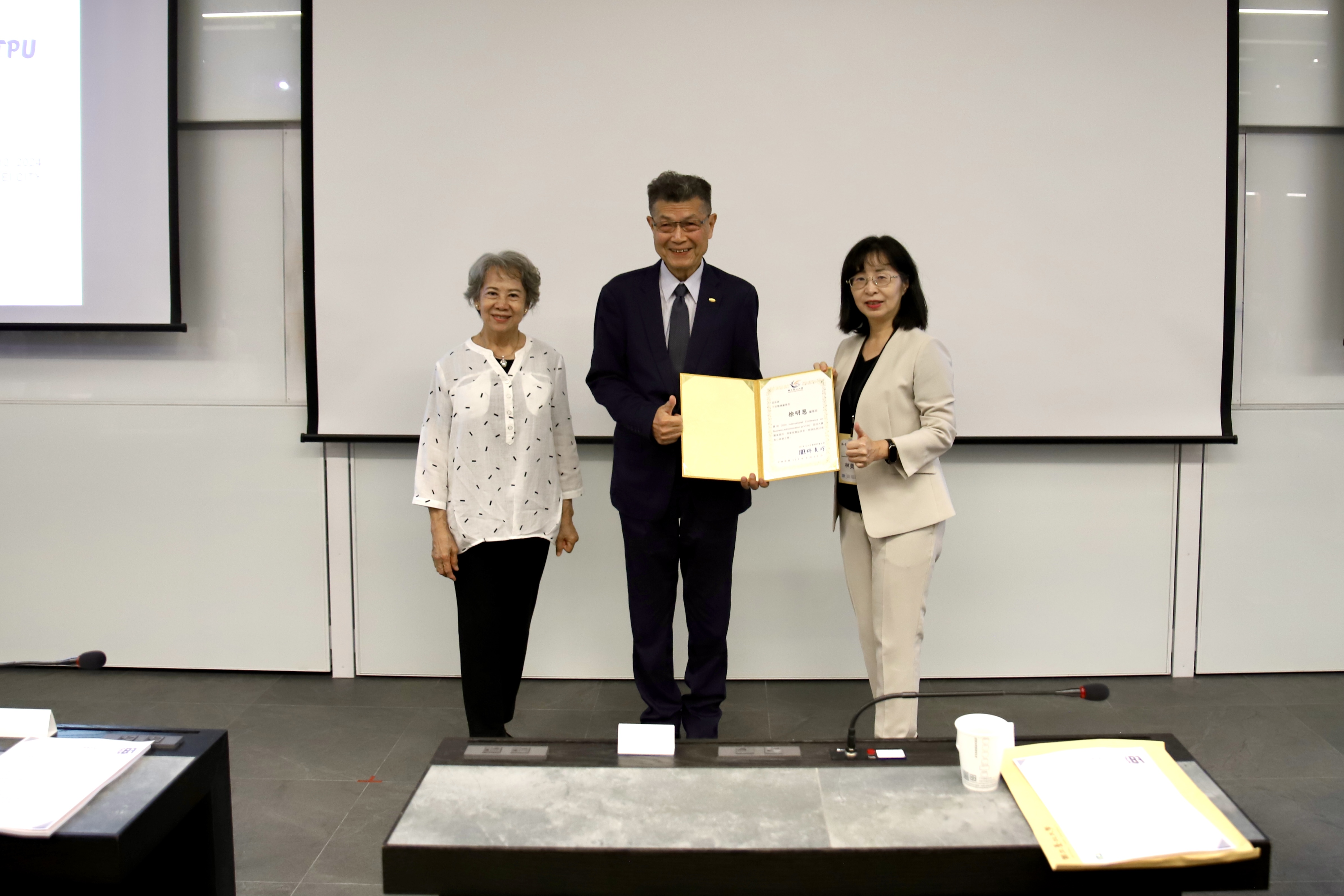 系主任林美珍教授頒發感謝狀予千如電機徐明恩董事長賢伉儷