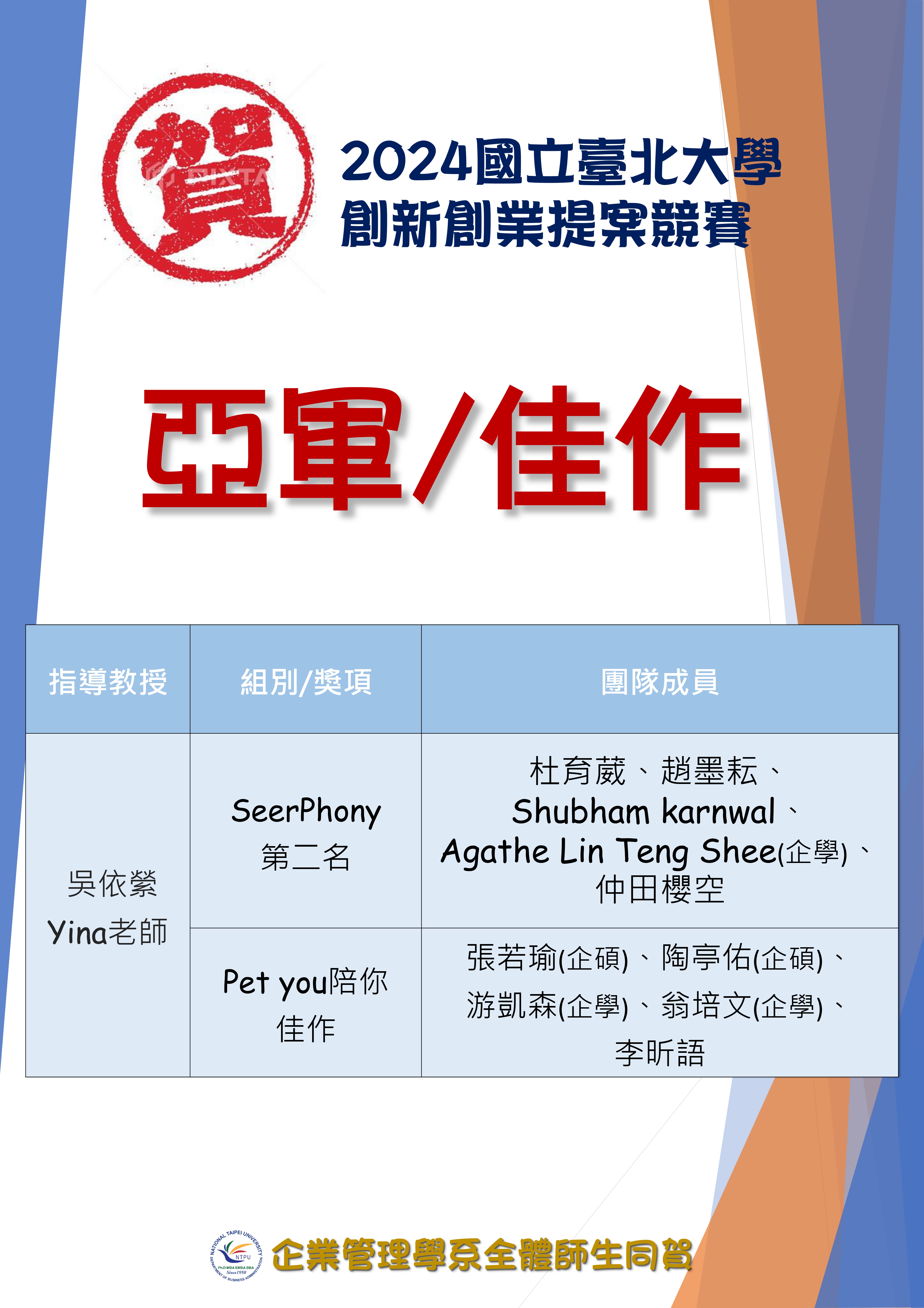 我們很榮幸在今年組隊參加《2024創新創業提案競賽》獲得佳作的成績。隨著都市化進程的加快和生活節奏的加速,許多人感受到前所未有的壓力與孤獨,我們選擇以「寵物療癒陪伴Pet you陪你」為主題,希望透過寵物療癒陪伴,在現代生活壓力大的環境中找到不一樣的抒發管道,為人們帶來一絲溫暖和慰藉。