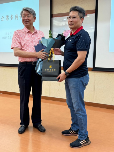學長分享上任前的這段日子非常的忙碌,馬不停蹄熟悉各部會事務,並笑說「現在才發現這些任務真的不簡單!」郭學長過去帶領的崇越集團位居半導體產業材料代理龍頭的地位,又跨足多角化經營,深知臺灣企業經營面臨的挑戰與困難,除了期許自己任內的政策與建設有足夠的創新與遠見,能做為未來提升臺灣GDP的基石,也對企業與產業的五缺議題提出了具體的看法與策略,為台下EMBA的高階經理人提供觀點上的交流。