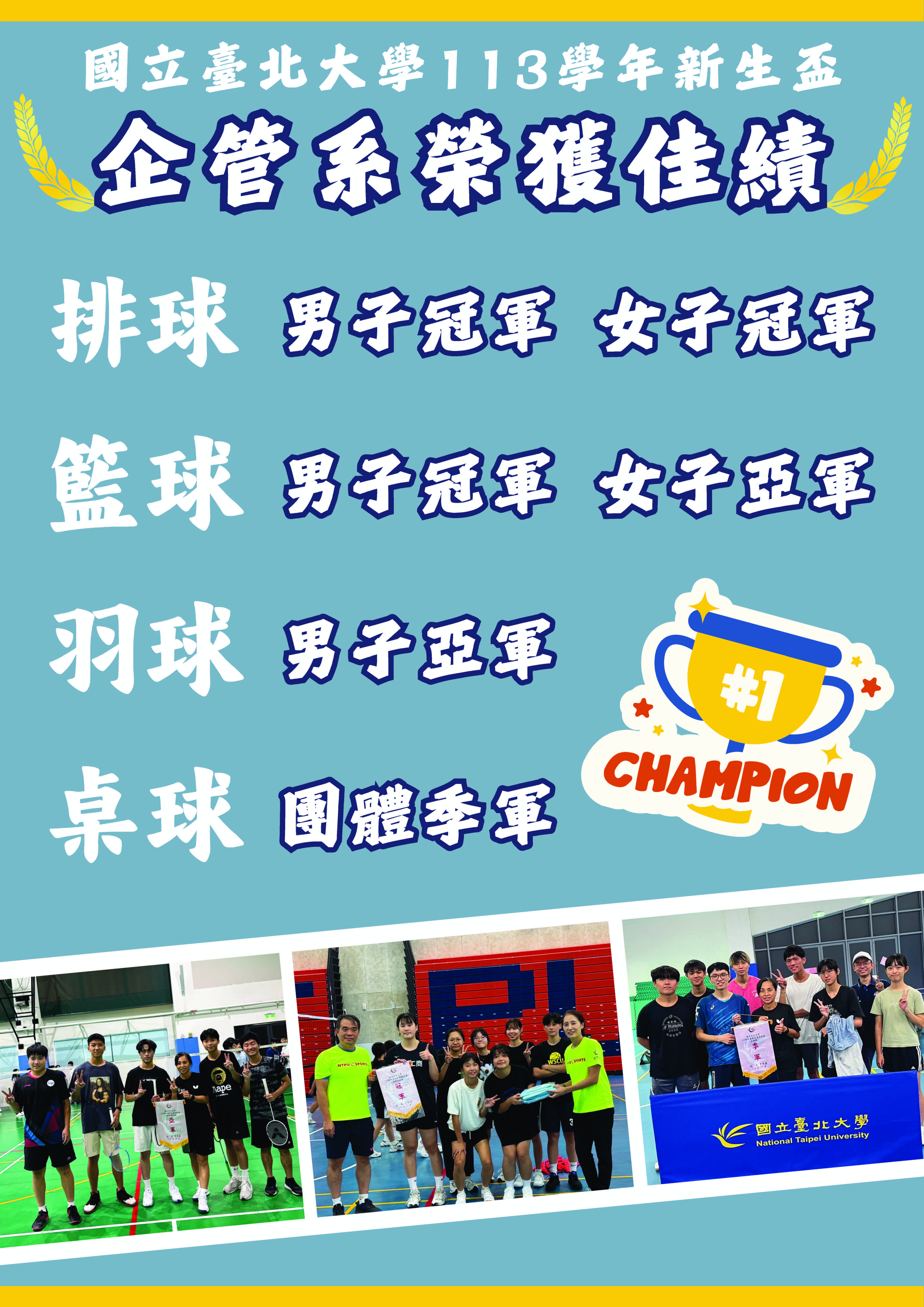 賀!本系113學年度新生盃榮獲三冠二亞一季佳績