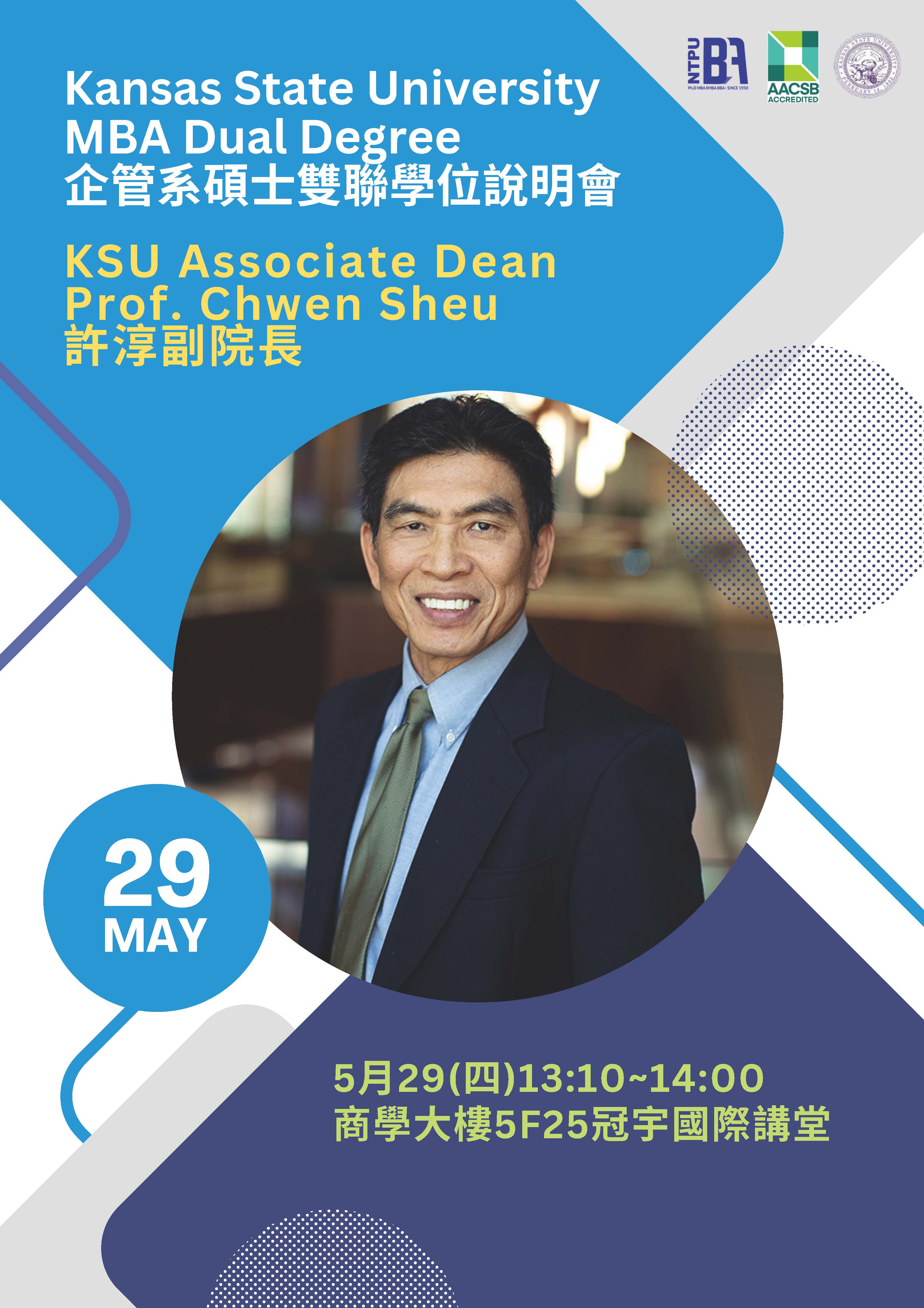 本次說明會將由美國KSU管理學院 許淳副院長 親自主講,帶您深入了解美國堪薩斯州立大學 MBA 雙聯學位的申請流程、課程優勢與留學經驗分享,絕對不能錯過!時間|5月29日(四)下午 1:10 - 2:00
