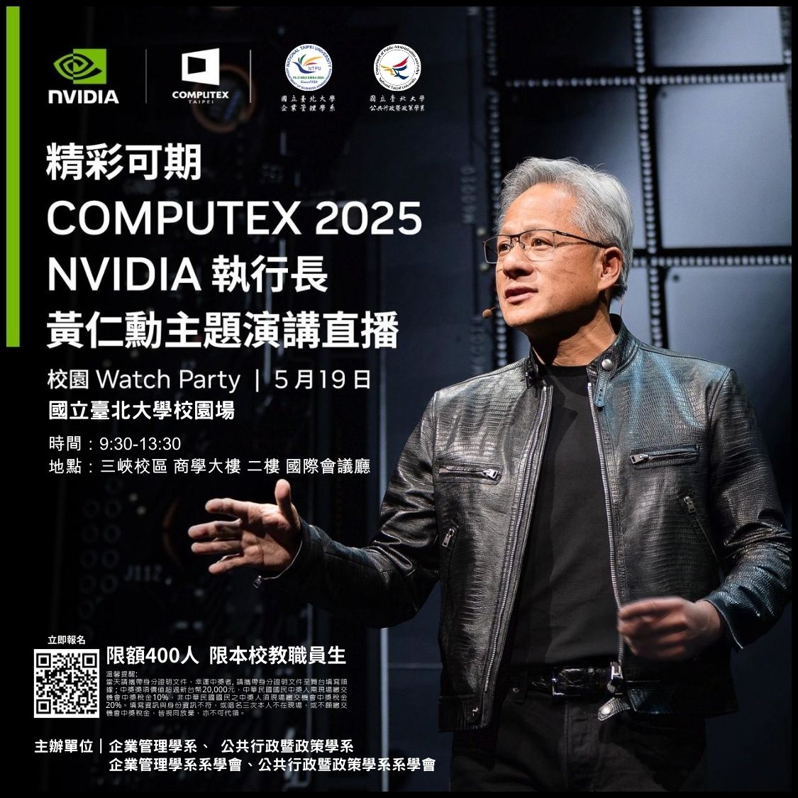NVIDIA 執行長黃仁勳主題演講直播,Watch Party 首次登陸臺北大學!