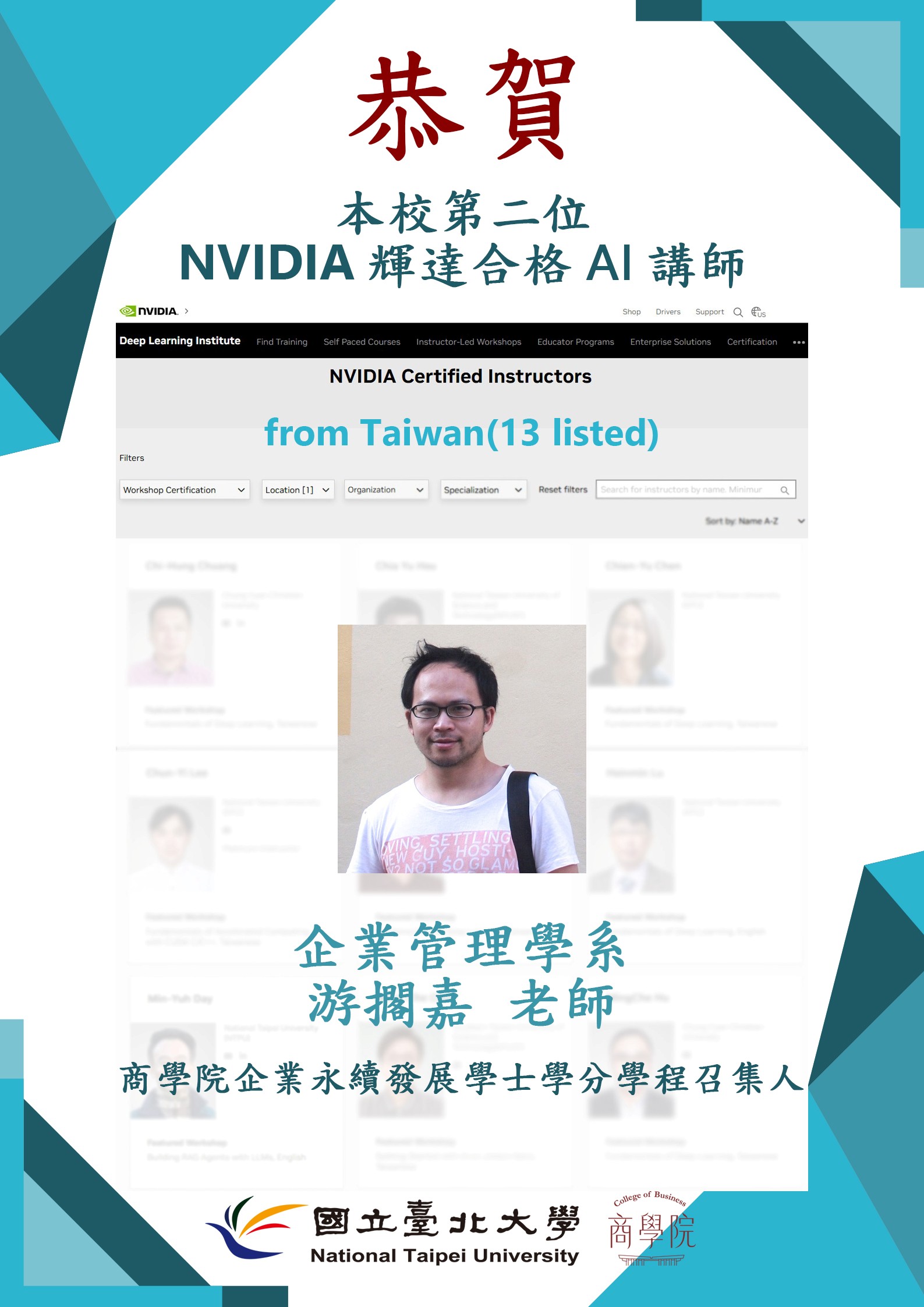 【賀】本系游擱嘉老師成為全國第13位輝達認證合格AI講師!