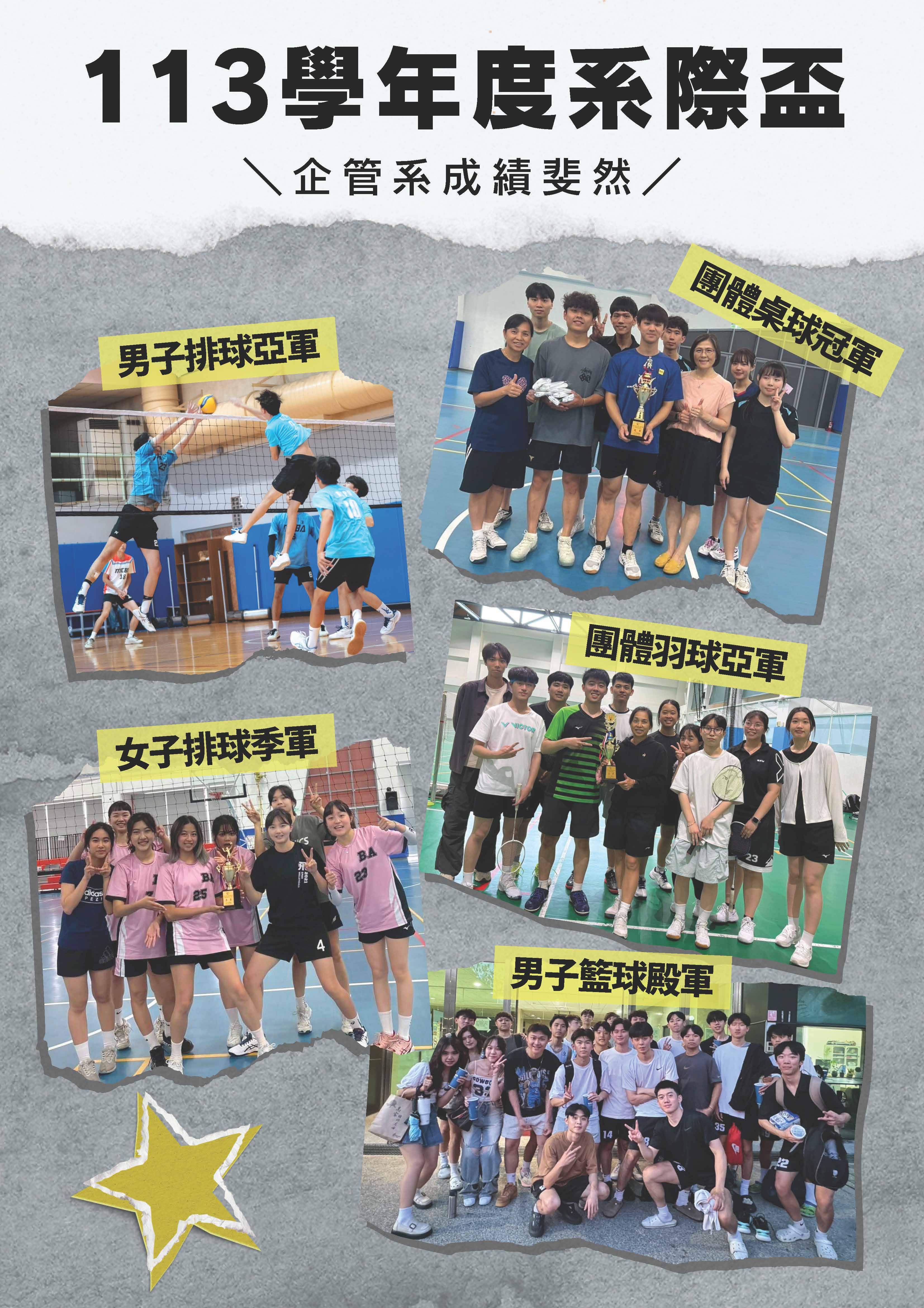 113學年度系際盃本系榮獲桌球冠軍、男排與羽球亞軍、女排季軍、男籃殿軍佳績
