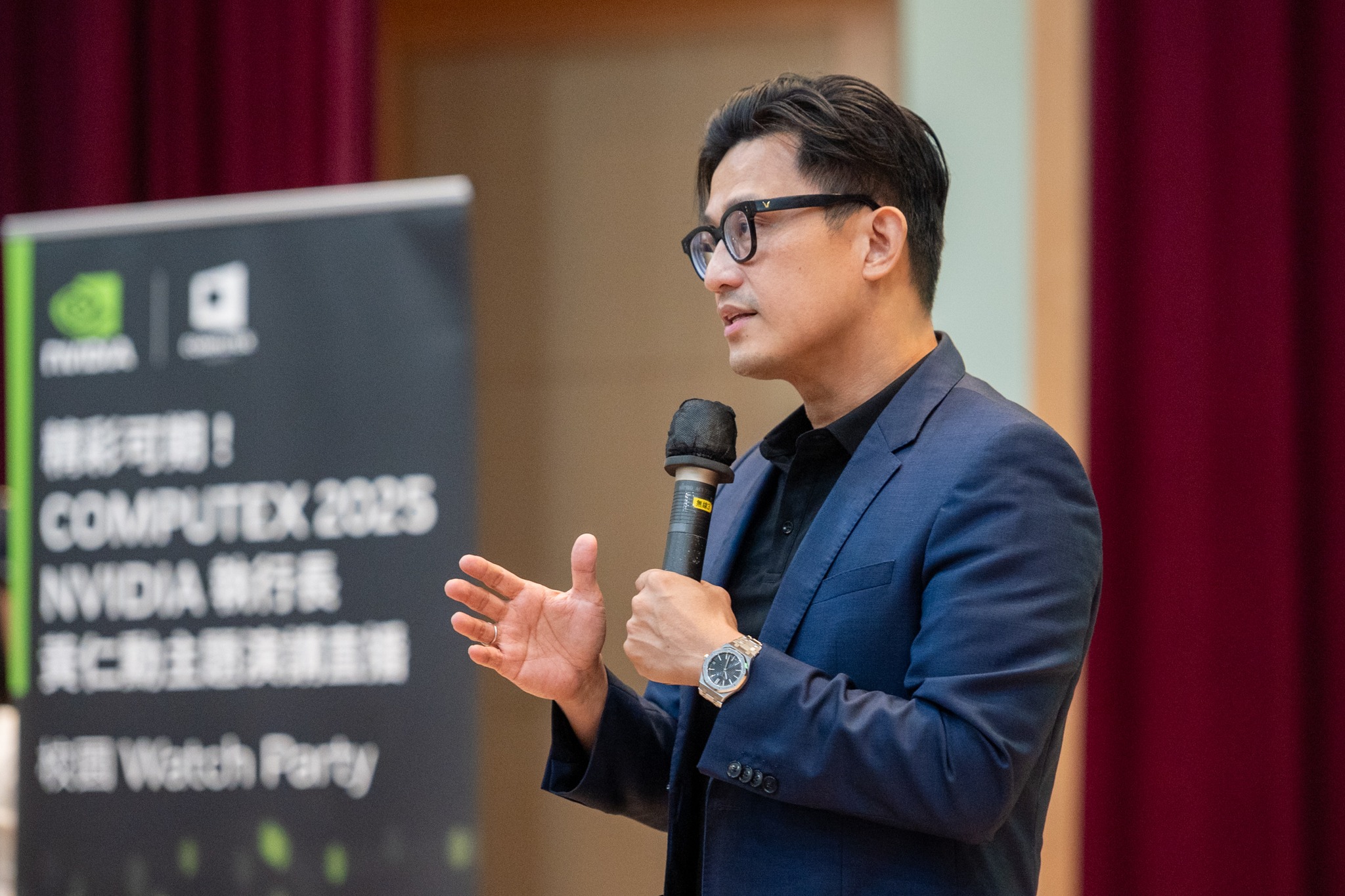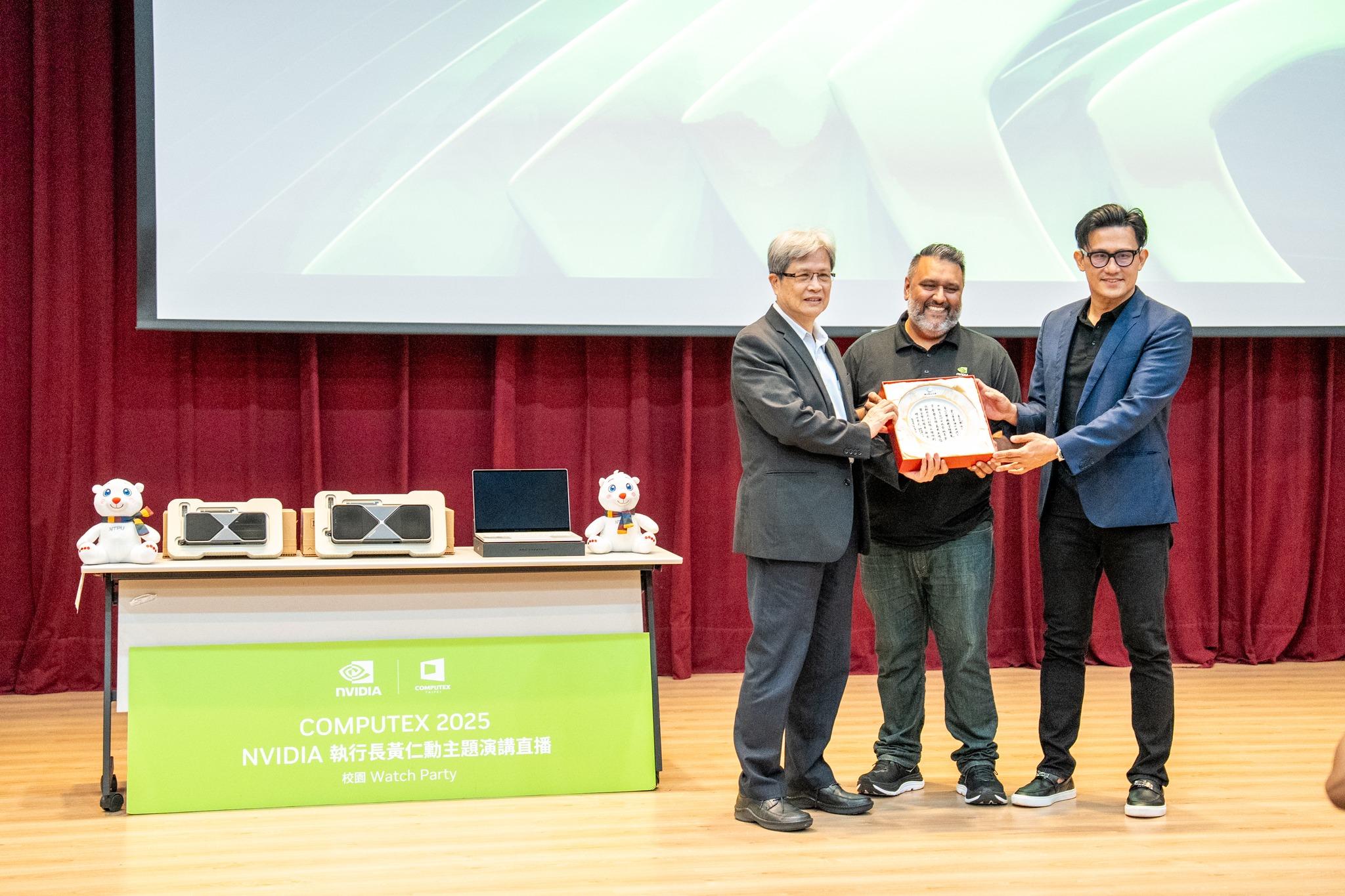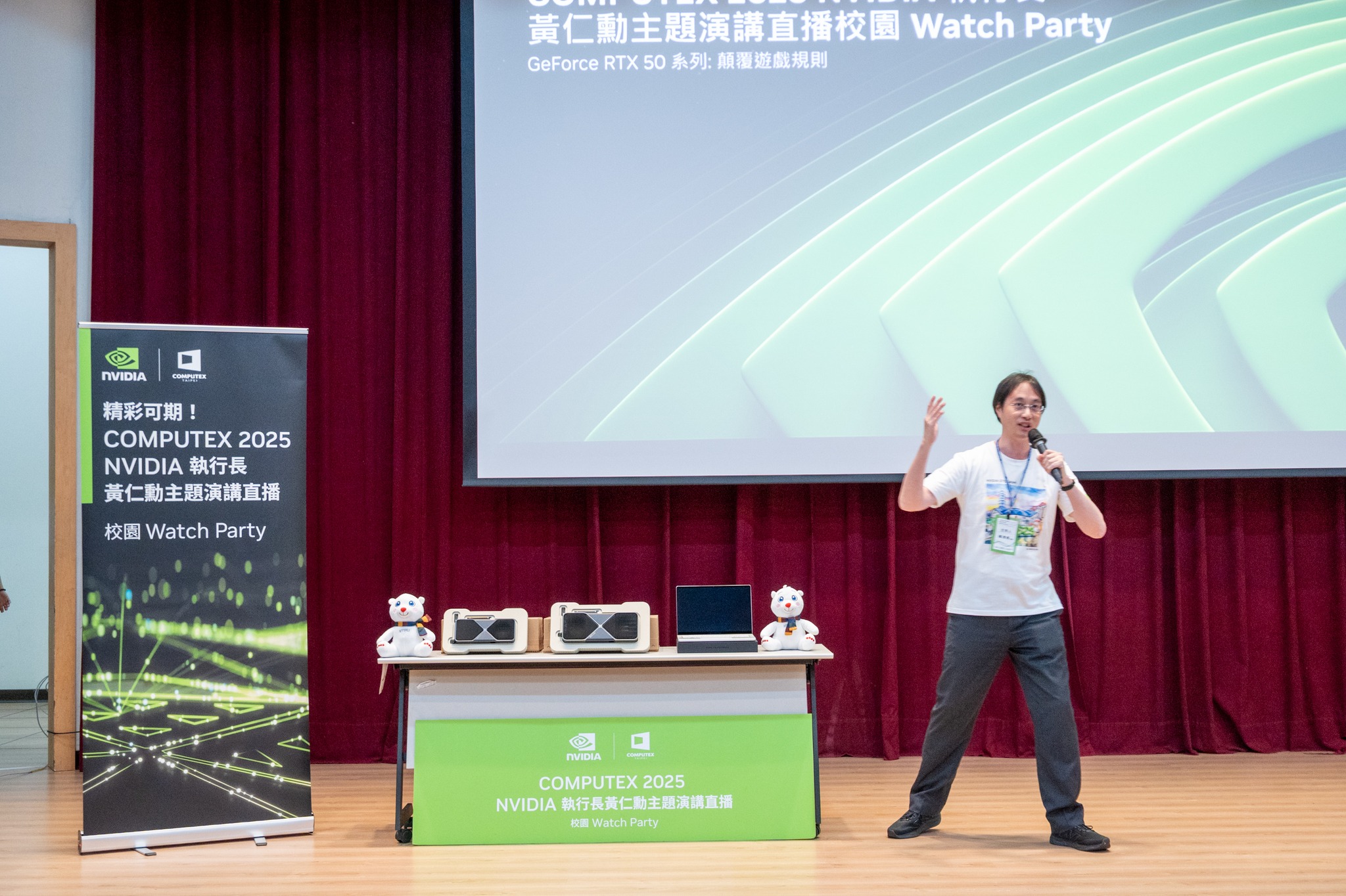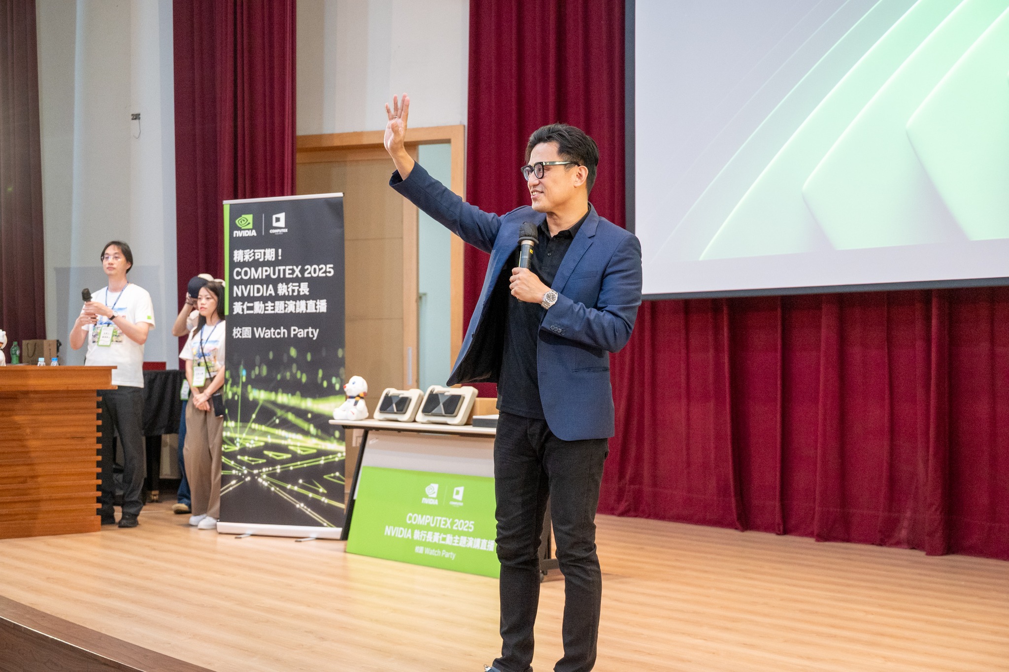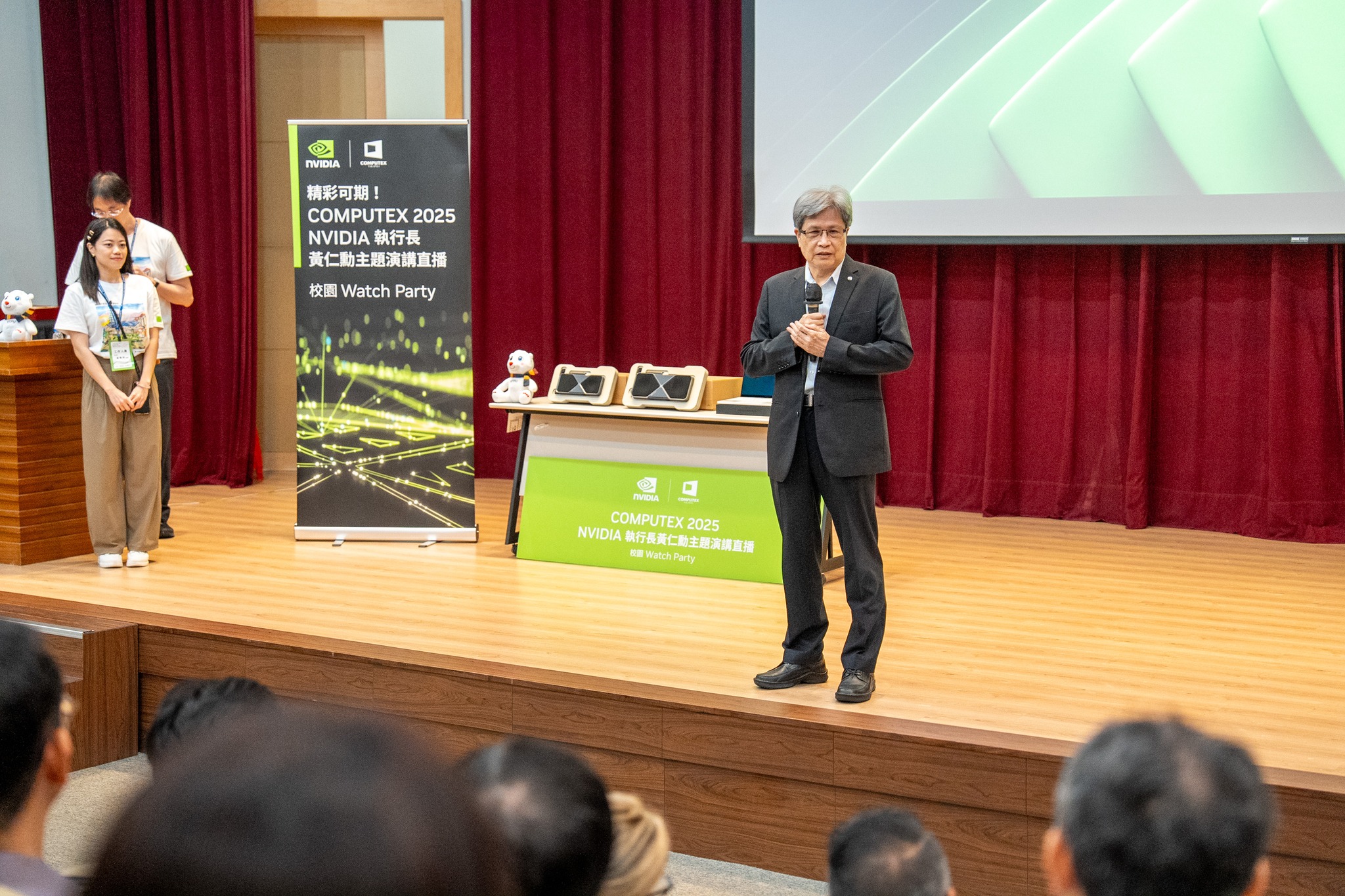 全球年度科技盛會 COMPUTEX 2025 於 5 月 19 日在台北盛大揭幕,其中最受矚目的焦點——NVIDIA 創辦人暨執行長黃仁勳的主題演講,同步於國立臺北大學商學院國際會議廳舉行 Watch Party 直播觀賞活動。本場「校園 Watch Party-臺北大學校園場」由公共行政暨政策學系與企業管理學系聯合主辦,活動一開放報名即秒殺,400 個座位迅速額滿,展現北大師生對 AI 發展與未來科技的高度關注與熱情參與。公行系系主任羅至美教授表示:「AI 已成為驅動產業創新的關鍵動力。透過本次活動,讓學生能第一時間掌握 AI 發展趨勢,進一步拓展其國際視野,為未來職涯打下關鍵基礎。」本次 Watch Party 不僅直播黃仁勳執行長的重磅演說,更邀請到NVIDIA 台灣區業務資深協理邾亦為(Alex)校友親臨現場分享與交流。Alex 為本校公行系與企管系雙主修的傑出畢業生,曾於今年春季應企管系主任蔡顯童教授邀請,在企管EMBA 課程中以「Further with AI, Faster on RTX」為題發表專題演講,內容深入淺出,深受師生好評。亦為學長今日致詞時也感謝母校的培育之恩,他以自身的求學與職涯經驗,鼓勵學弟妹勇於跨領域學習,並表示AI應用的核心並非僅在撰寫程式,而是在於如何將AI結合多元領域的知識與資源,進而為產業及社會創造價值。李承嘉校長亦親臨現場致詞表示,學校正積極推動人工智慧相關應用與課程創新,並已制定「人工智慧課程獎勵辦法」,鼓勵教師開設 AI 課程,強化教學資源,朝向打造AI 驅動型創新大學的願景邁進。活動現場由華碩電腦展示最新科技裝置,提供師生親身體驗;主辦單位也安排 NVIDIA 限量信仰潮T 發送、餐點供應與精彩抽獎,最大獎項為 GeForce RTX 50 系列顯示卡,為現場氣氛再掀高潮。國立臺北大學一直秉持「以創新研究發展新知」之辦學理念,致力於推動實務導向與跨域整合教學,培育具備國際視野與創新思維的優秀人才。透過本次與全球同步的 Watch Party,師生不僅零時差掌握尖端科技脈動,更能從世界級產業領袖的分享中汲取靈感,深入思考 AI 發展的倫理面向與未來應用,展現本校融合科技教育與社會責任的創新教育實踐。