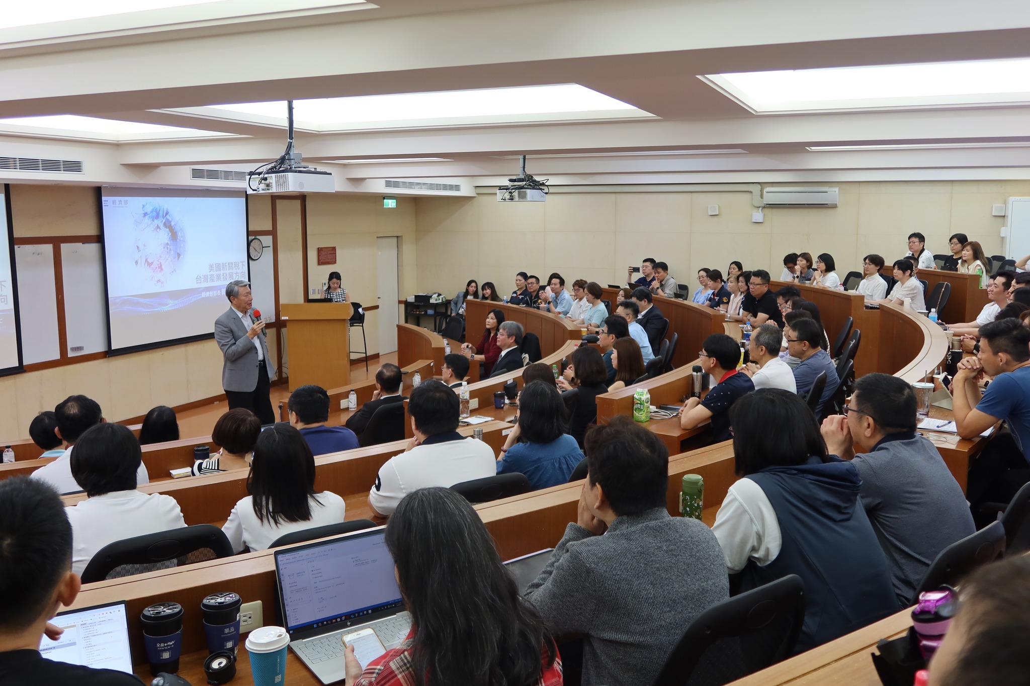 國立臺北大學企業管理系於6月7日舉辦產業經濟論壇,邀請經濟部長暨傑出校友郭智輝博士以「美國新關稅下─台灣產業發展方向」為題演說,與會參與者包括:大葉大學校長方文昌、主秘陳宥杉、企管系主任蔡顯童、北大企管EMBA聯誼會、經營管理聯誼會、博士班聯誼會成員,吸引逾百人參與。系主任蔡顯童致詞時表示榮幸邀請郭部長回母校,部長也感性分享其求學歷程對職涯的深遠影響,並鼓勵學弟妹勇於跨域學習。針對美國關稅政策衝擊,郭部長說明政府已提出財政、金融、產業轉型與國際談判等整合對策。他進一步介紹「境內關外」與「境外關內」雙軸發展策略,包括加強高附加價值產業招商、推動科技園區海外布局、設置單一窗口服務等,以打造「經濟日不落國」。此外,經濟部啟動「百工百業20萬人才培育計畫」,協助中小企業導入AI技術,並引進國際大廠設研發據點,促進技術與人才交流。蔡顯童主任最後表示,國立臺北大學企業管理學系長期以來秉持「理論與實務並重、在地與國際接軌」之辦學理念,透過此次的論壇展現北大企管在學術與產業間的橋樑角色,深化師生與系友連結,彰顯其國際視野與實務影響力。