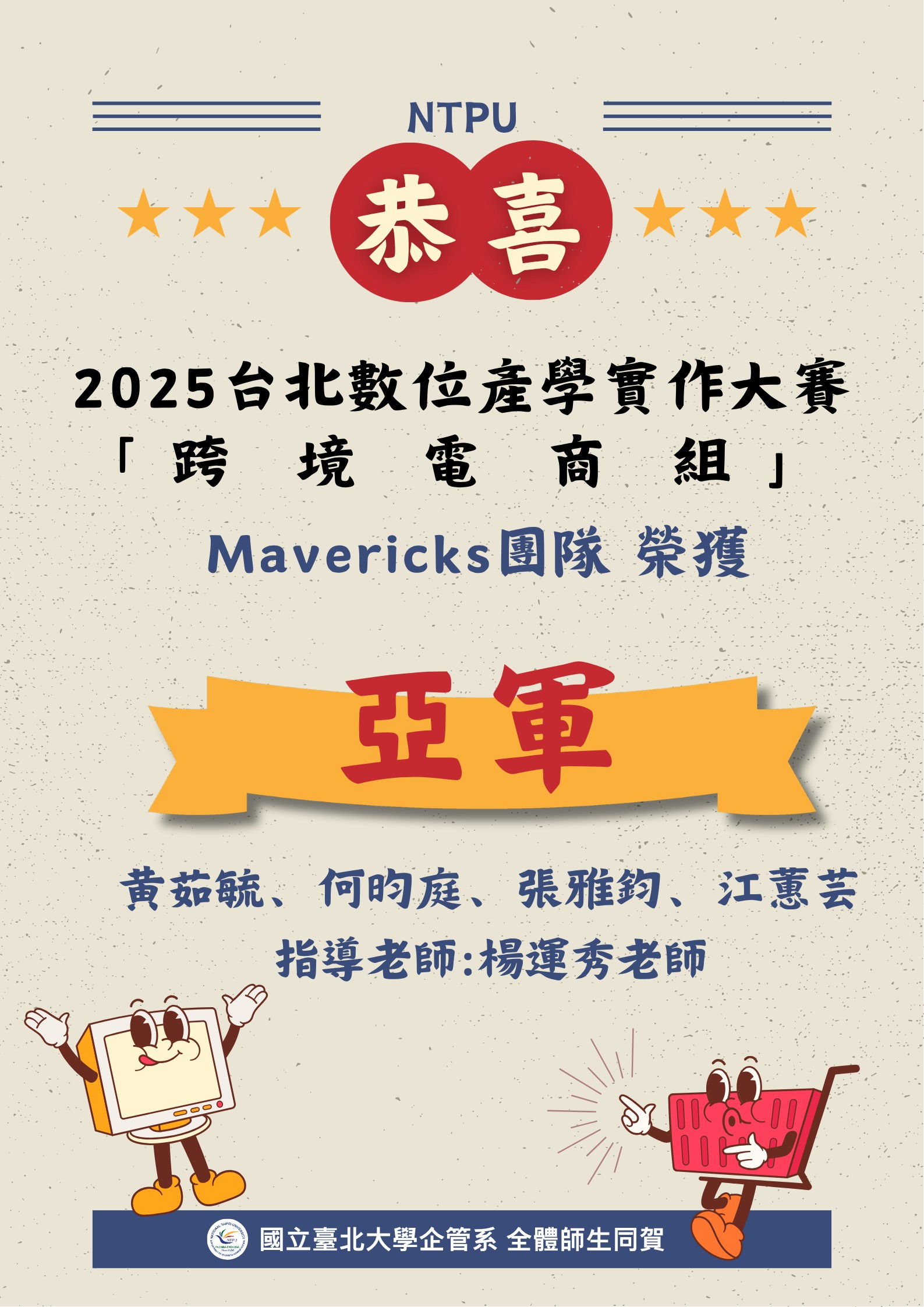 【賀】楊運秀老師率領學生參加2025台北數位產學實作大賽「跨境電商組」競賽榮獲亞軍