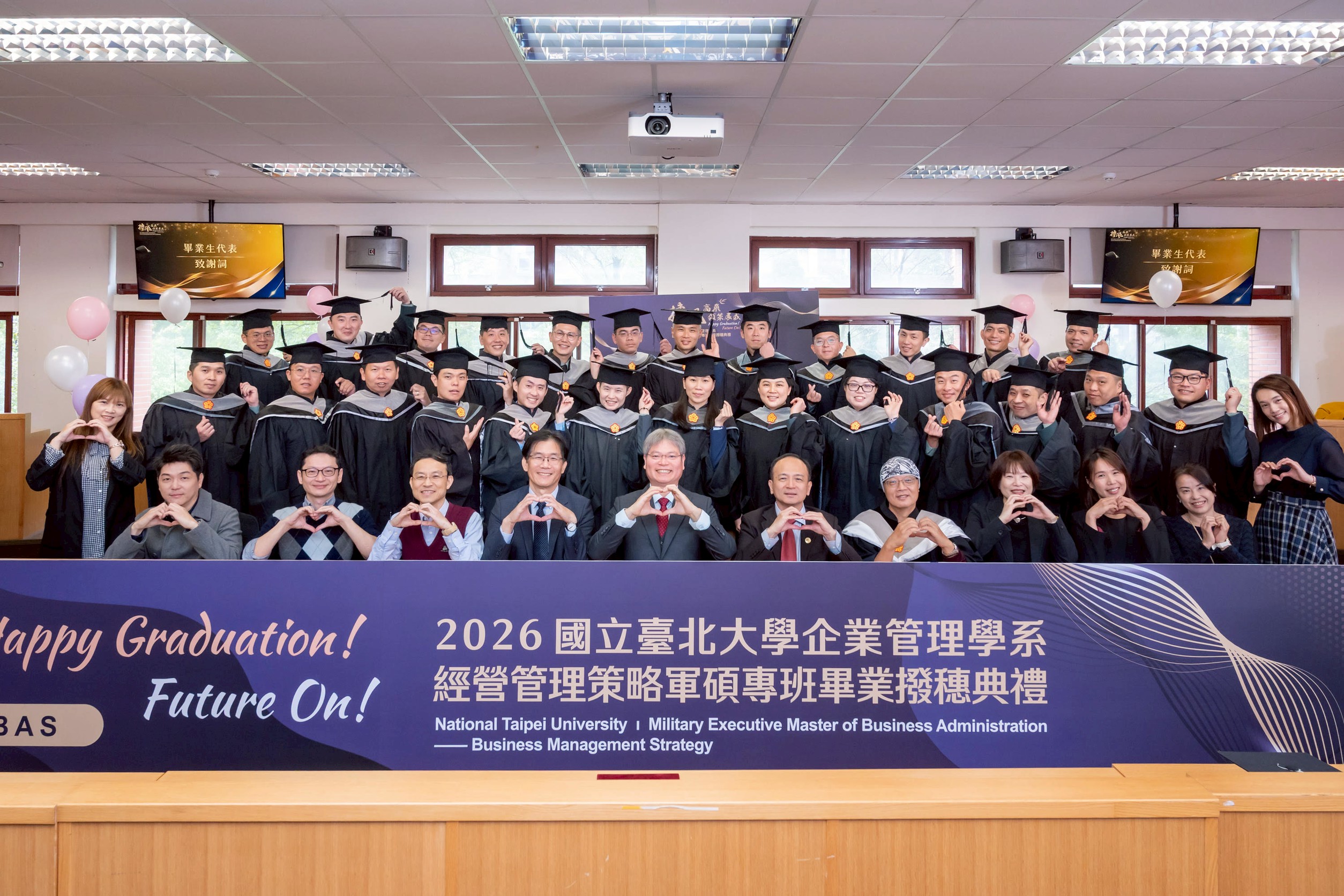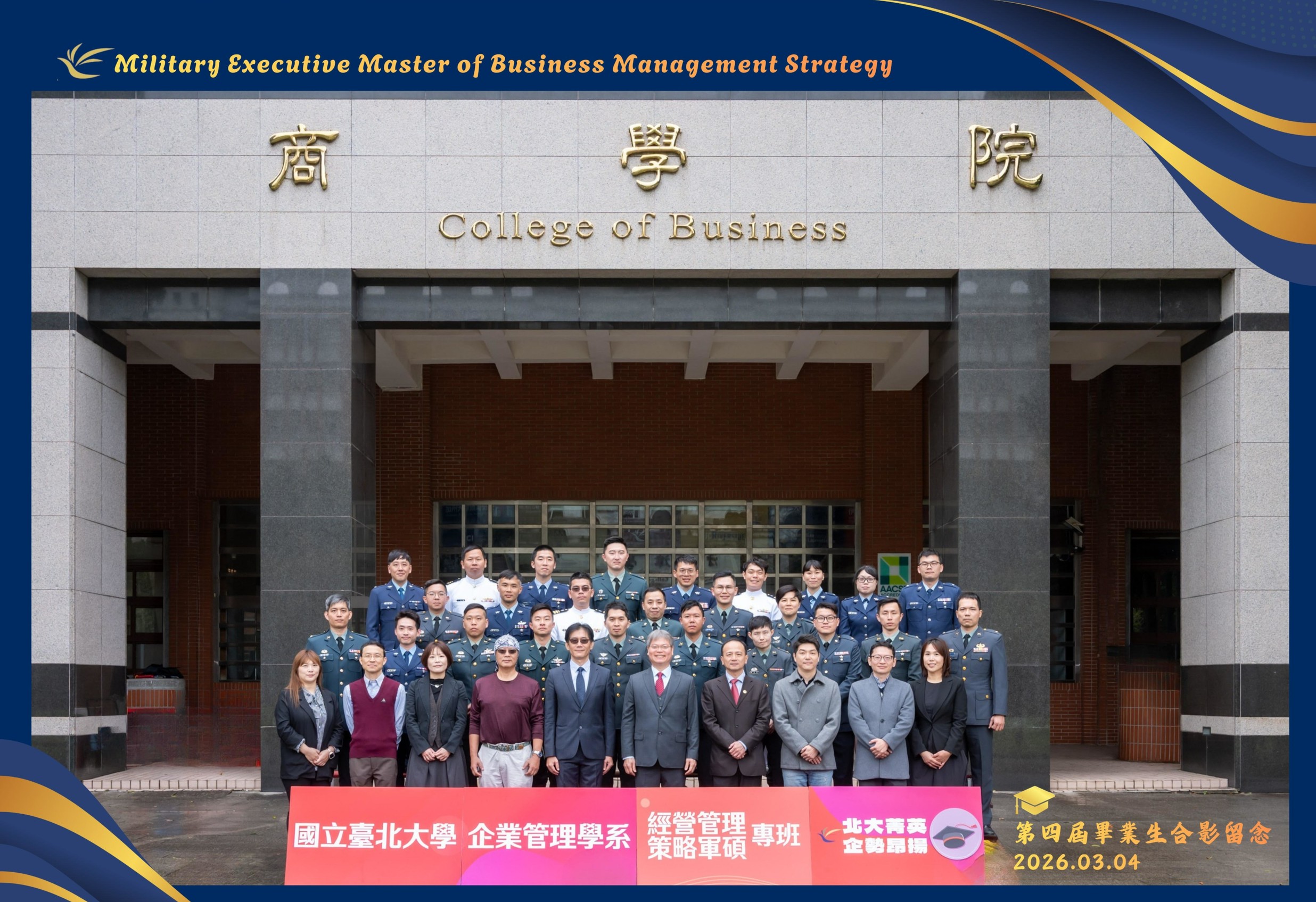 典禮在溫馨與祝福中圓滿落幕。25位畢業生帶著在臺北大學企管系所累積的專業知識與宏觀視野,正式回歸各自崗位。歷經一年半的專業訓練與跨域學習,學員們不僅精進管理知能,更培養宏觀視野與決策能力,為未來軍事領導與組織經營奠定堅實基礎。未來,他們將以「摶風高飛」之姿,將企業管理的核心能力轉化為軍事領導與組織治理的實踐力量,在國家與社會的重要位置上持續發光發熱,開創屬於自己的嶄新篇章。