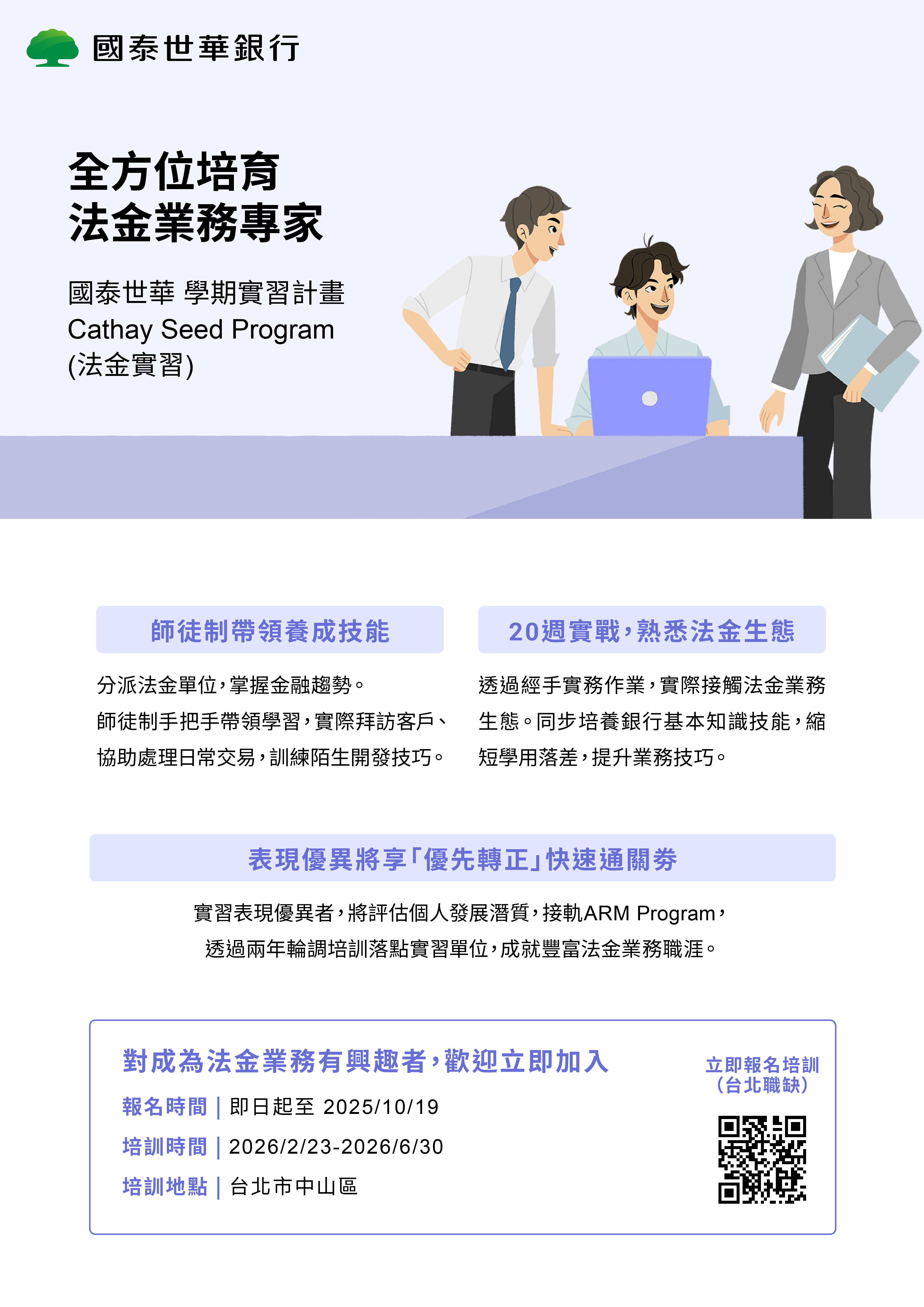 我們是#台灣金融業專為僑外人士開設的招募計畫