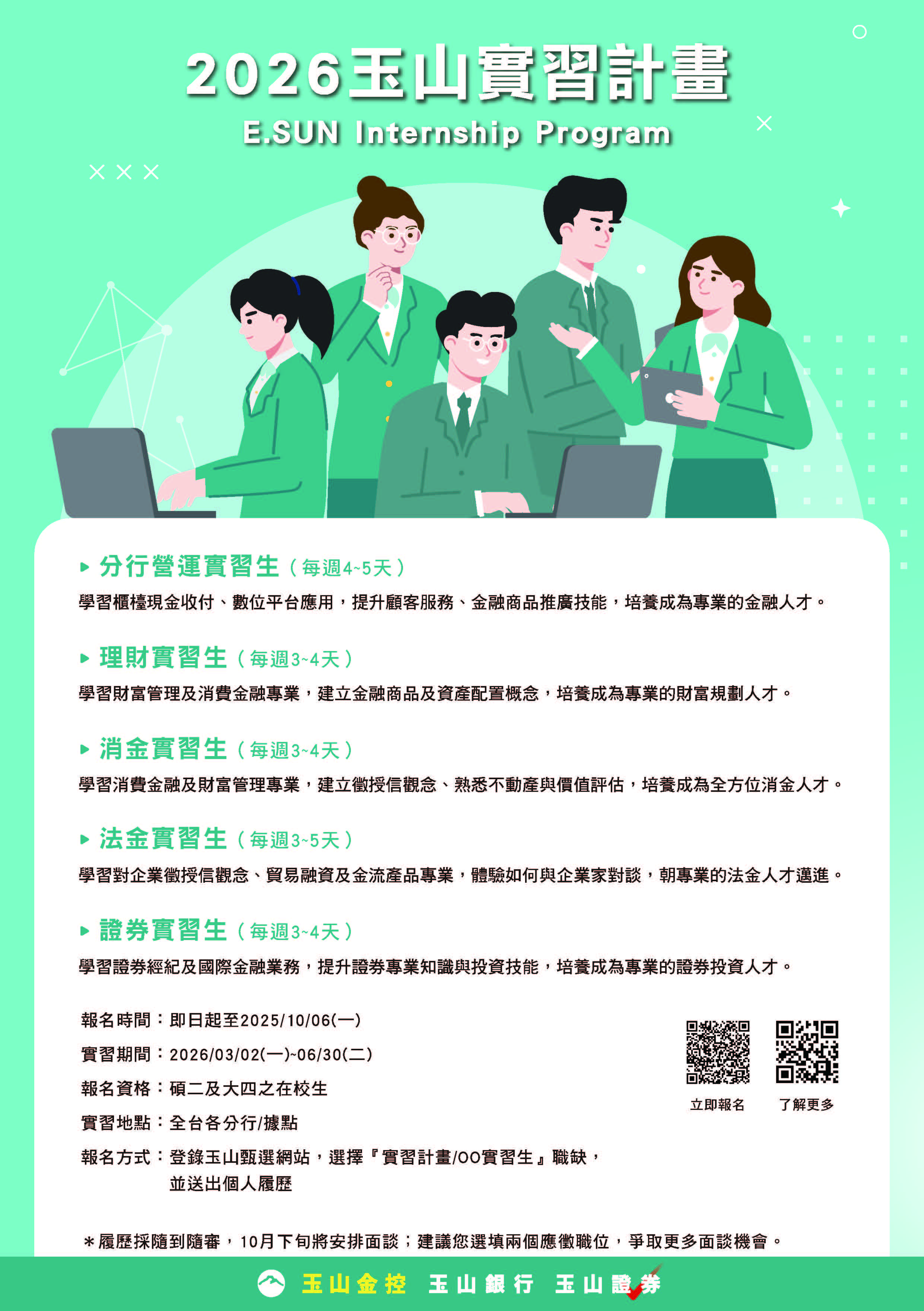 歡迎踴躍報名實習計畫,自即日起至4/20都