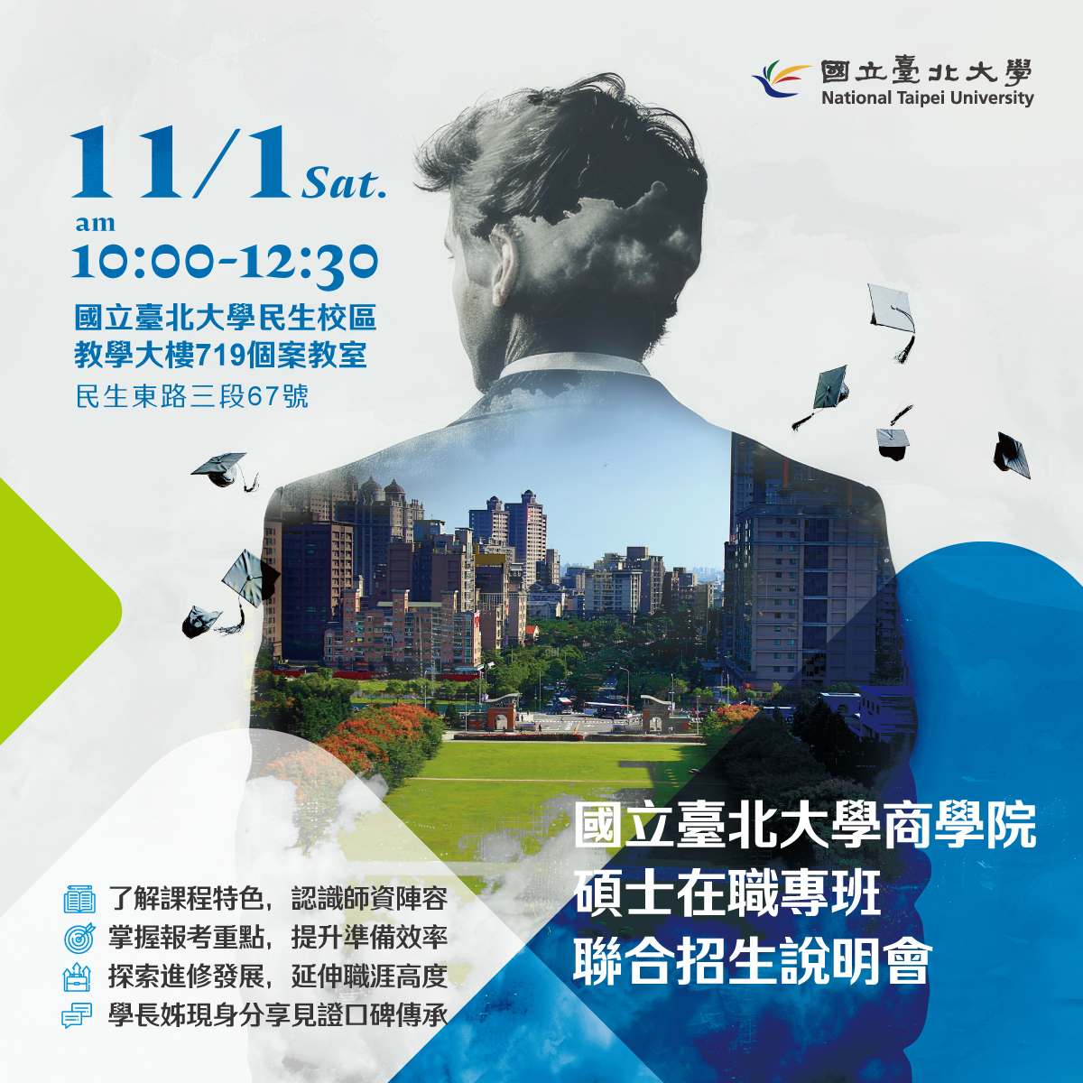 Sep 15 【115學年度 國立臺北大學 商學院碩士在職專班】招生說明會 開始報名