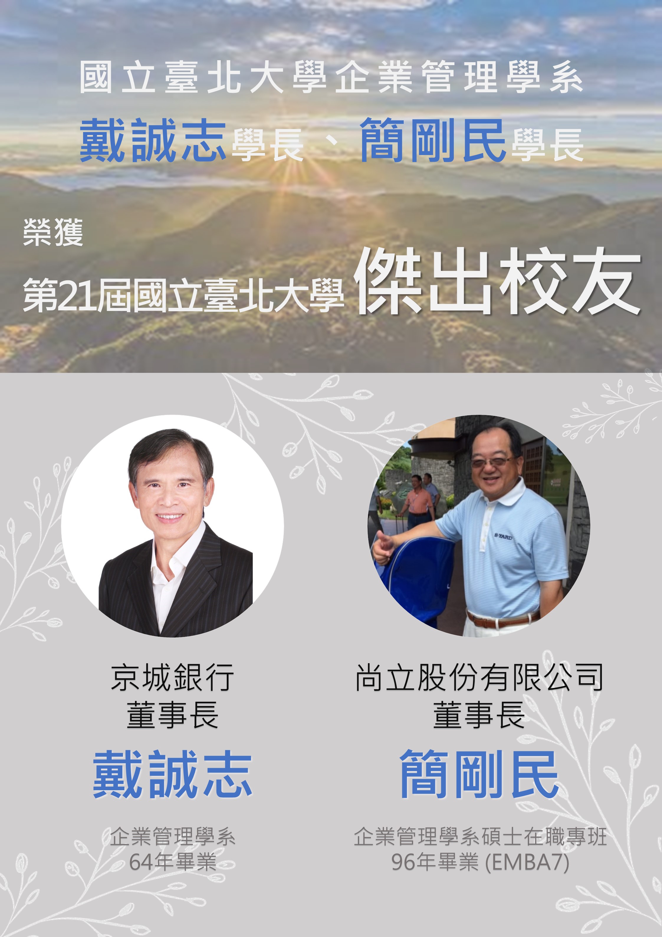 【賀】本系戴誠志董事長、簡剛民董事長 榮獲本校第21屆傑出校友