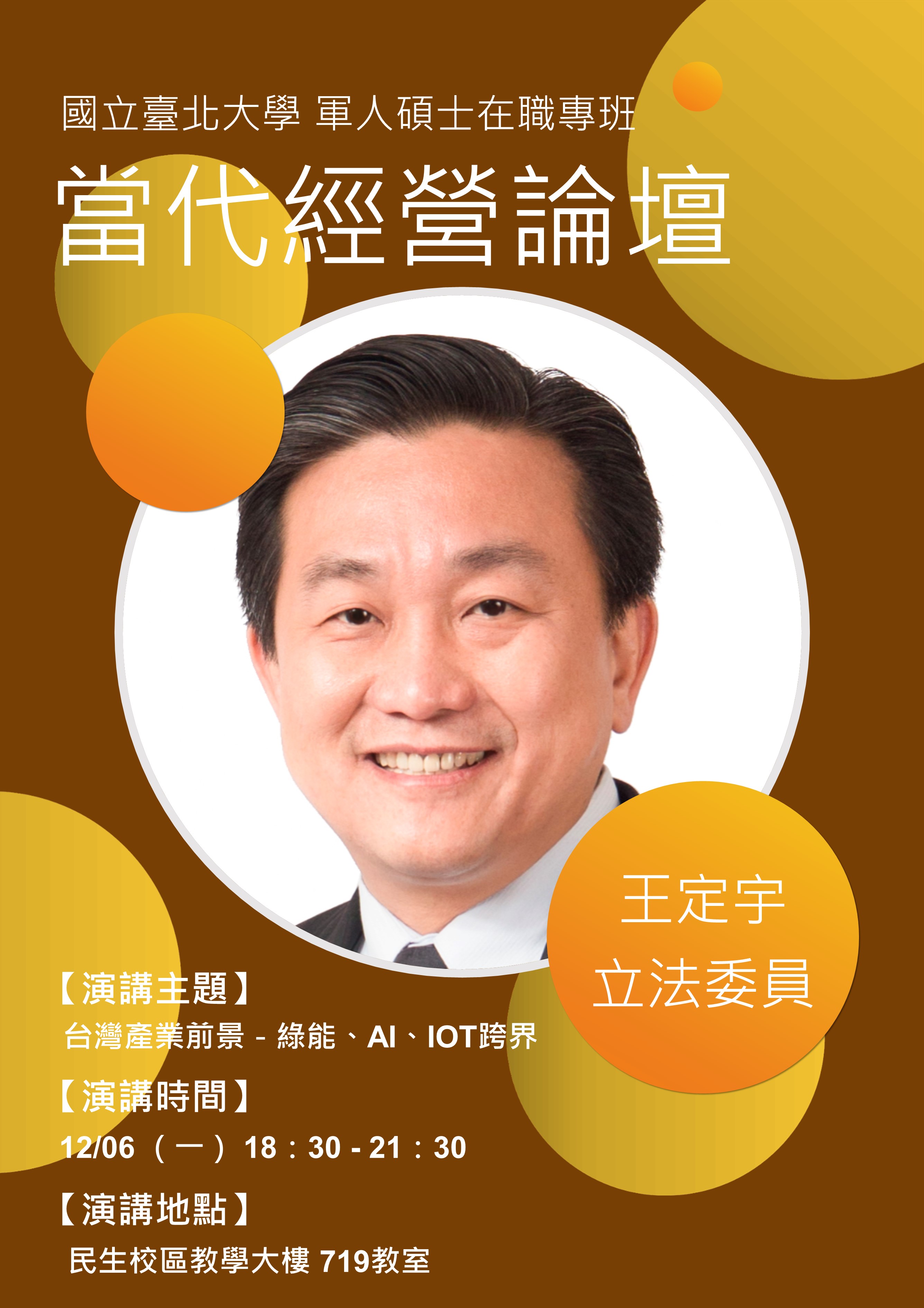 【講座】12/06(一) 18:30-21:30《台灣產業前景-綠能、AI、IOT跨界》 講師:王定宇立法委員